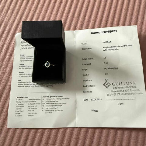 Farge: E - nesten helt fargeløs (en av de høyeste fargegrad)