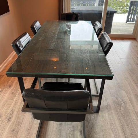 WoodStory heltre 3-delt spisebord selges rimelig fra utstilling i møbelbutikk.