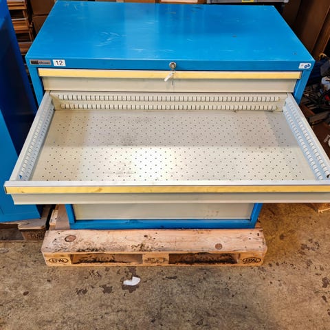 Gigant Verkstedskap med 6skuffer.Alle skuffer går fint og lås for at kun en skuff skal åpnes av gangen fungerer.
