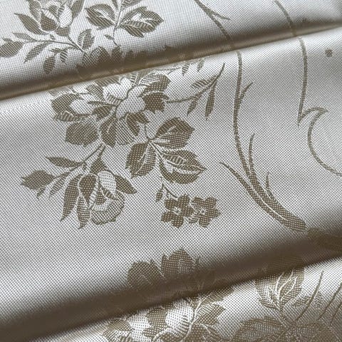 Selger et vakkert stoff i 1700-talls barokkstil, klassisk, i grnn farge med hvitt broderi av hyeste kvalitet. Mler 2,70 x 2,80 meter, egnet for lage gardinfall, polstre sofaer i klassisk stil, lage bordduker, puter til innredning og dobbeltsenger. Allsidig.