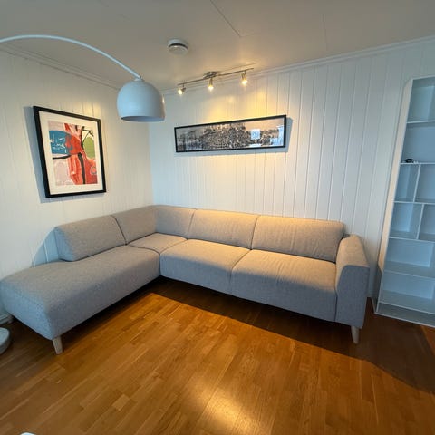 Sofaen fremstår pen og velholdt, er nyrenset og klar til bruk med én gang. Dette er en modell som sjeldent blir stående lenge når vi får den inn, nettopp fordi størrelsen og designet treffer bredt.