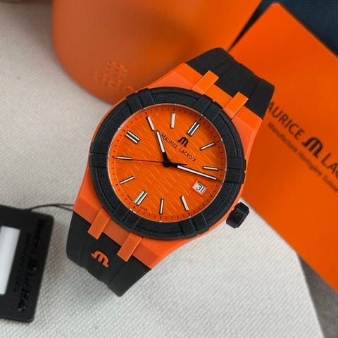 Et vakkert herreur fra Maurice Lacroix i Aikon #Tide-serien med referansenummer AI2008-60060-300-0 Yellow edition. Klokken drives av et hykvalitets quartzurverk og har datovisning ved klokken 3-posisjonen. Lett vekt takket vre den resirkulerte plastkassen og gummiremmen. Klokken er lett lese p grunn av kontrasten mellom bakgrunnen og viserne / detaljene. Glassene er safir.