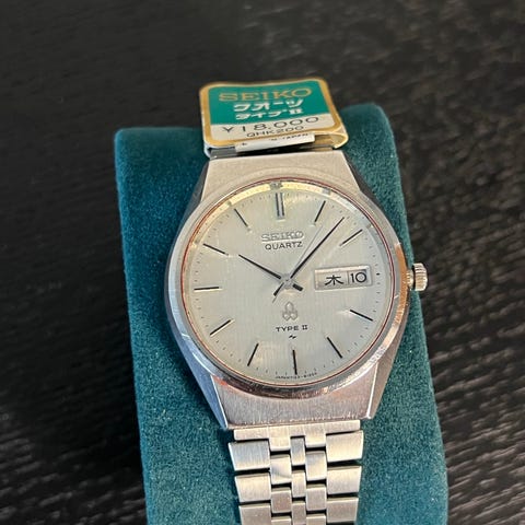 Denne Seiko Lord Matic fra tidlig p 1970-tallet er et fengslende eksempel p japansk designfilosofi, som kombinerer dristig estetikk med robust mekanisk ingenirkunst. Kjent som LM, l denne linjen komfortabelt mellom Seikos standard automatiske utvalg og de eksklusive King Seiko-modellene, og tilbd overlegen finish og avanserte urverk. Dette spesifikke eksemplet har en fengslende grnn gradientskive som skifter nyanse avhengig av lys, sammen med den sregne krystallen som ofte finnes p premium Lord Matic-referanser. Det representerer en fantastisk mulighet for samlere til sikre seg et stykke 1970-tallets urhistorie, med en sregen og fargerik karakter."}]]>}},{
