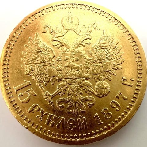 5-rubler gullmynt med keiseren Nikolai II av Russland fra 1898