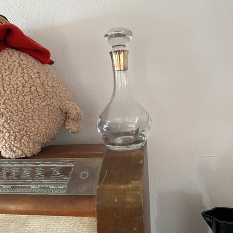 Et elegant par glasskaraffer dekorert med forgylt bronse, datert fra andre halvdel av 1900-tallet.