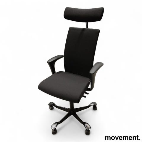 Håg H04 4600 med nakkepute og armlene Sort stoff(Gabriel Fame) grått fotkryss, P