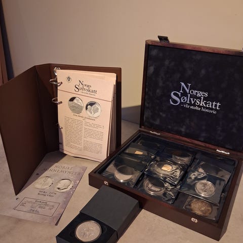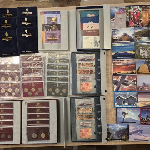 Et parti p over 1000 mynter i ulike typer og tilstander.
