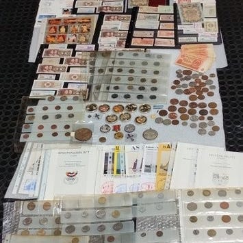 Over 1000 objekter innenfor omrdet mynter, medaljer, banknoter og frimerker.