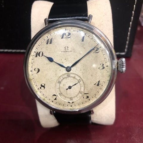 Omega Marriage-klokke i hndlaget etui med ekte Omega-signert urverk fra ca. 1921 med Ingen minstepris!