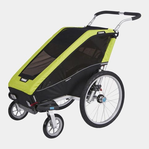 dette er en premium sykkelvogn med plass til 2 barn, kjent for svært god fjæring og komfort. Vognen triller lett, ligger stabilt bak sykkelen og gir en trygg og behagelig tur for barna.