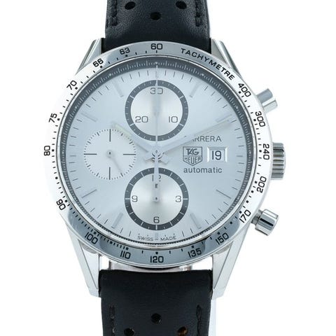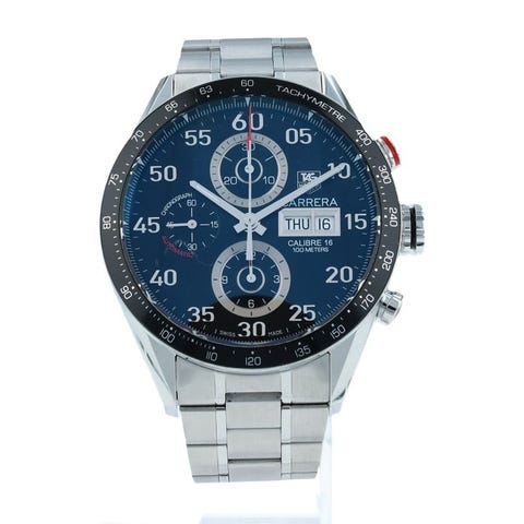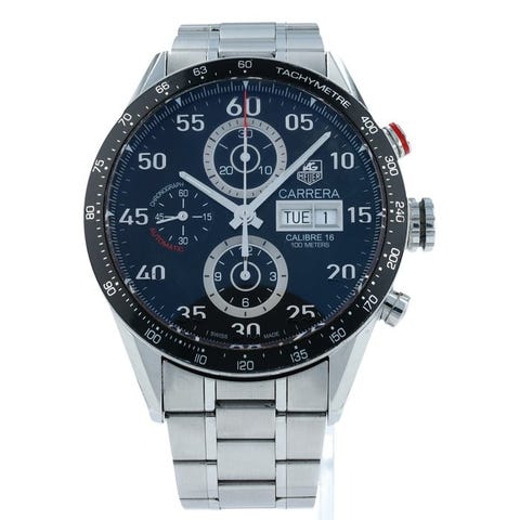 TAG HEUER Carrera Chronograph Calibre 16 Blue CV2A1V.BA0738 Eske Garanti Rustfritt stl herreklokke bl Utfrelse: bl Nesten mint-tilstand Brukt