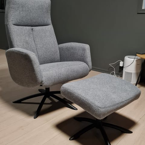 En Conform Partner lenestol med følgende krakk selges i grå farge.