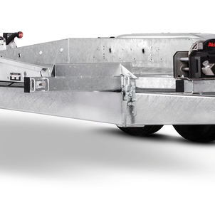 Kraftig tandem?biltransporthenger med hydraulisk tipp og vinsj som standard, lav oppkjøringsvinkel og robuste kjøreskinner som gir sikker lasting og transport av bil, motorsykkel eller maskiner.