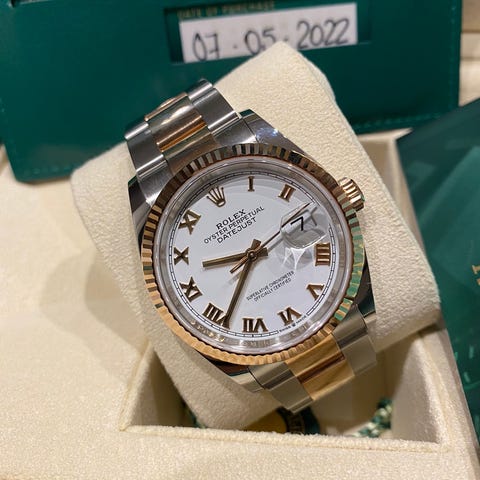 Brukt Rolex Datejust 116233, i veldig god stand, med en vakker champagnefarget urskive med romertall, komplett sett.