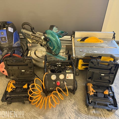 Praktisk DeWalt kapp- og gjærsag type DW770-QS med tilhørende DE7023 sagbenk og en lang LED-strip for arbeidsbelysning. Kapp-/gjærsagen er på 1500W og kapper opp til 60 mm dybde.🔹 DeWalt DW770-QS kapp-/gjærsag