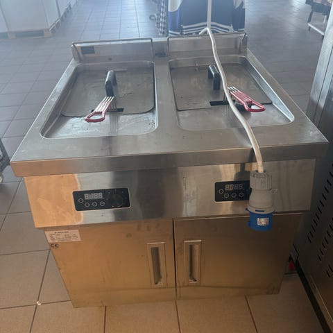 -Elektrisk frityrkoker 15+15 l med 2 V-formede kummer. Skjulte varmeelementer.