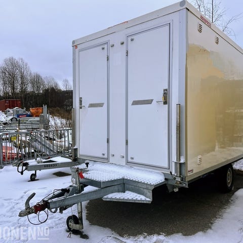 ArnPro letthushenger av mindre sort, trolig fin som spisebrakke til 4 personer, arbeidsbrakke til 2-4, utebod på hjul. Tidligere brukt som skjøtevogn til fiber, har siden stått ubrukt i minst tre år. På grunn av skjøtearbeidet er det laget noen ekstra luker og flapper ved døren og bak ved vinduet. Låsesylinder blir fjernet før overtakelse, ellers selges den som den er. Tingene inni kan du få med eller sette igjen, kommer med trapp som ligger løst inni. Nedsettbare ben på alle fire hjørner for stabilitet ved bruk og gåing inni. Bak rotet ser den noenlunde ren og pen ut, lukter normalt og ingen synlige tegn til vannskader.Trapp og fastmontert følger med, annet løst kan settes av hos oss.