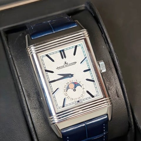 Forsiden av urskiven viser klassisk Reverso-estetikk, mens baksiden tilbyr et kontrasterende mrkere design med dag/natt-indikator, noe som gjr denne modellen svrt ettertraktet blant samlere.