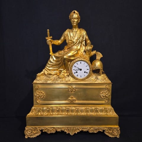 Et imponerende og staselig bordklokke fra 1800-tallets urmaker CH. Gautier med et vakkert bronsebilde av HEIZELER ET E. CORNU.