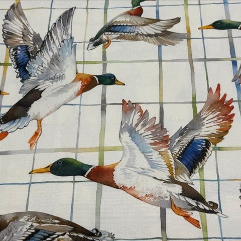 Jeg selger 1 stoffstykke som mler 2,50 m x 2,80 m, totalstrrelse 5,00 m x 1,4 m, av trykt bomullsstoff blandet med polyester, Sorrento-sitronmnster som vist p bildet, nyttig til lage duker, gardiner, dekorative puter, stolputer, sengetepper, ovnstrekk og mye annet ...