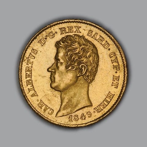 Mynt Kongeriket Italia Vittorio Emanuele II 20 Lire 1869 Torino, Marengo gull, sigillata SPL fra Numismatica Subalpina.