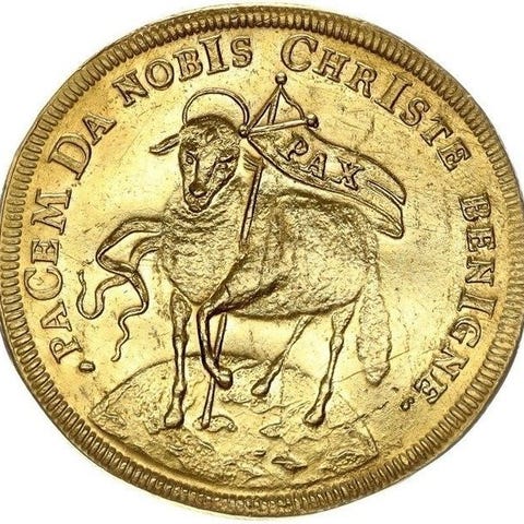 Augsburg, by, gullmedaille til 2 dukater uten rstall (omkring 1700) stempel av Philipp Heinrich Mller. For barnas oppdragelse.