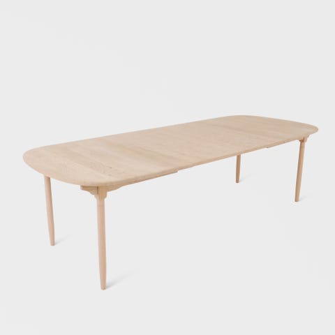 Utrolig flott og håndverksmessig godt utført retro spisebord i eik. Plassbesparende og bordet blir cm med ileggsplatene. Bordet er renovert og i god vintage stand.
