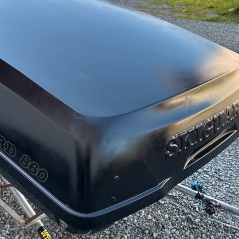 Royal Line takboksRoyal Line takboks i svart plast, levert med festebraketter for enkel montering på taket. Takboksen viser synlig bruksslitasje med riper og merker i overflaten, men har ingen synlige brudd eller manglende deler. Funksjonen er ikke testet ved oppføring.