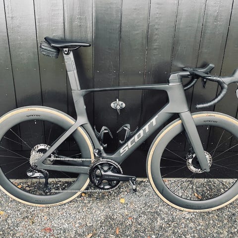 Aeroad CF SL ramme i small, satt opp med Sram rival axs 2x12 og Mavic SL45 karbonhjul.