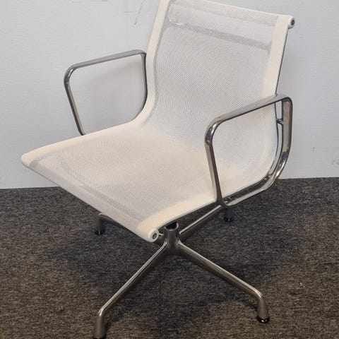Ergonomisk design: EA108-stolen kombinerer et polstret sete med en lett ramme i aluminium, noe som gir både komfort og god støtte i lange møter.