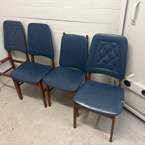 Fine retrostoler som kan brukes enkeltvis eller sammen i en fin mix! Se billedtekst for pris på de enkelte stolene. Fra 1000,- til 1800,-.