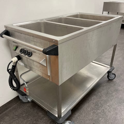 Rustfritt vannbad fra Metos, modell D72/10 TCBE. Enheten er utviklet for skånsom og jevn varmeholding av mat i storkjøkken, buffeter eller kantiner. Vannbadet fylles med vann og holder ferdig tilberedt mat varm over tid uten at den tørker ut eller svir seg. Produsert i 03/2024 av ALI Group Srl i Italia. Beregnet for 220-240V 1-fas strømtilkobling. Effekt: 1800 watt. IPX4-klassifisert for beskyttelse mot vannsprut.🔹 Metos Vannbad D72/10 TCBE