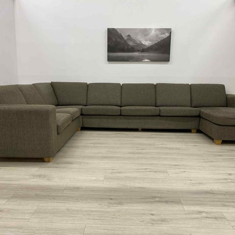 Stilren og moderne U-sofa i en tidløs gråtone som glir sømløst inn i både lyse og mørke hjem. Den romslige utformingen med to sjeselonger gir perfekt plass til avslapning, filmkvelder og hyggelige samlinger med familie og venner. Rene linjer, faste puter og sorte ben skaper et elegant uttrykk som kombinerer komfort og design på en balansert måte. Her får du en sofa som både ser eksklusiv ut og inviterer til lange, avslappende kvelder.