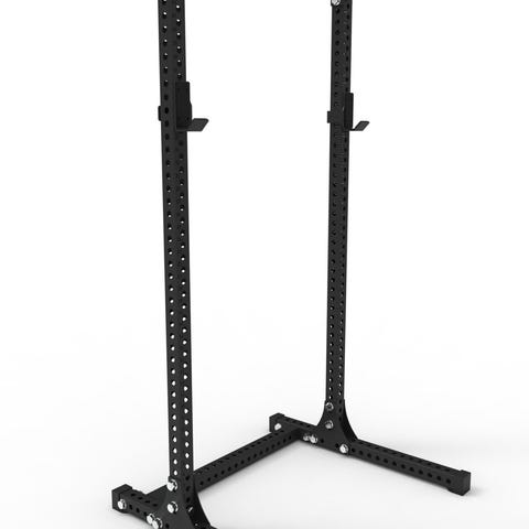 Når den er foldet inn, måler riggen bare 16 cm ut fra vegg. Dette betyr at du kan ha et fullt funksjonelt knebøystativ, pull-up-stativ og teknisk vektstang stativ med minimalt plassbehov.