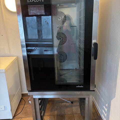 Ovnen har digitalt panel med programmering, klima-/fuktstyring og flere steketrinn. Egner seg til baking, steking, damping og regenerering. Leveres med innvendige rister/skinnegitter som vist på bildene.