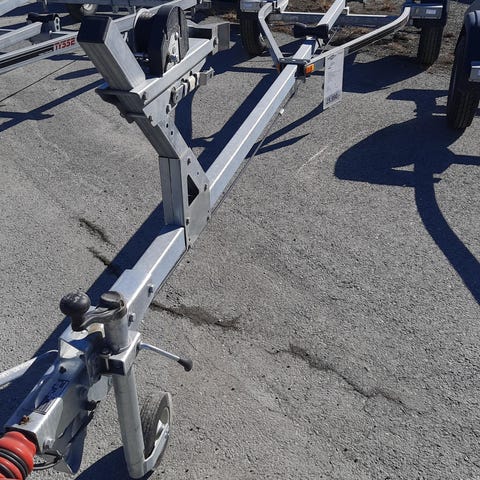 Tysse Båthenger 6384 leveres standard med LED-lys og justerbare surrefester. Dette er en boggi henger med brems og selvjusterende vugge.