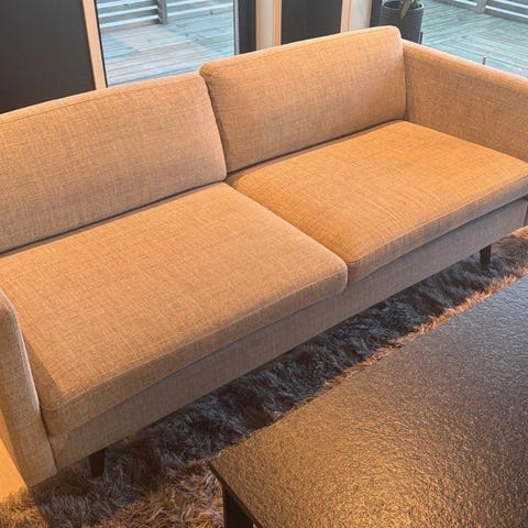 UTSTILLING SELGES! Brooks 3 seter sofa Enardo 28 Beige med ben svart 3.5cm.