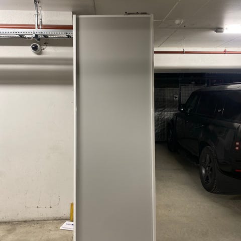 Fargen "Pure grey" med profiler i aluminium. Demp på dørene kan bestilles i tillegg. Skinner må tilpasses, da de leveres i overmål.