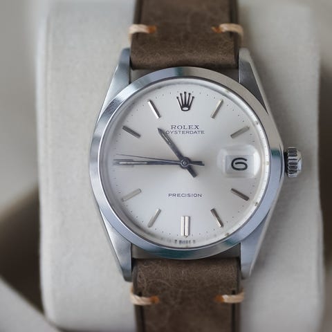 Rolex Oyster Precision Ref. 6426 fra 1963. Klokken fremstår som godt tatt vare på. Viserene har nylig blitt byttet, og den kommer på en helt ny ettermarked rem, så klokken er helt klar for ny eier. Klokken holder tiden godt og viser referanseverdi på +15 sek, som er helt innenfor for vintage klokker.