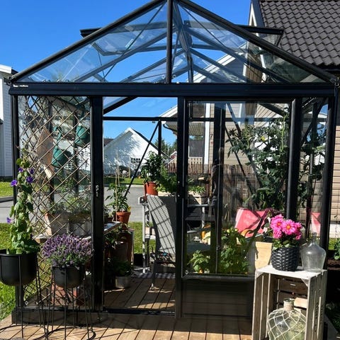 Ett solid drivhus som tåler en storm. Testet i vindstyrke 120 km/t og snø vekt på 60 kg pr. kvadratmeter.