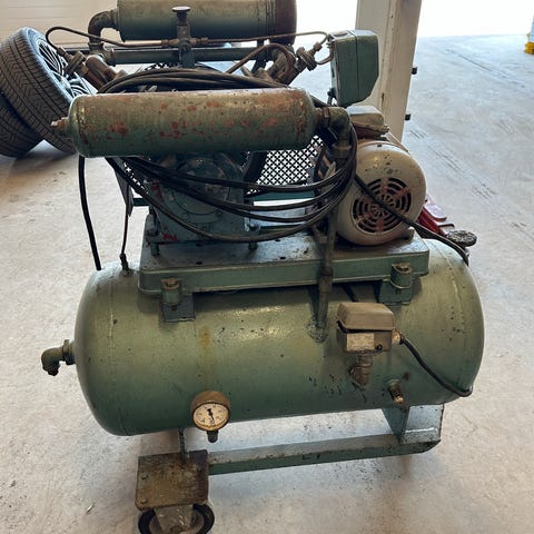 Solid og tung konstruksjon beregnet for verksted og industrielt bruk. Eldre modell med klassisk støpejernspumpe.– Merke: DevillBliss