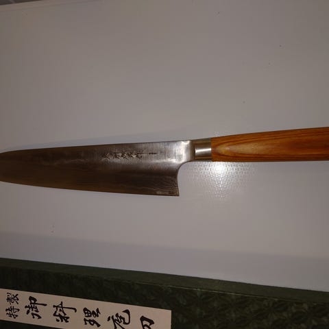 3 stk Japanske kokkekniver. Blitt montert/produsert av undertegnede. Aogami 2 stål. Damaskmønster. 1 stk Kiritsuke chefkniv. 1 stk nakiri grønnsakskniv. 1 stk petty/utility kniv. Alle knivene kommer i sølvfarget gaveeske. Alle knivene blir også gjennomgått en liten oppfrisking av eggen før utsendelse. Sendes i posten med deres norgespakke.