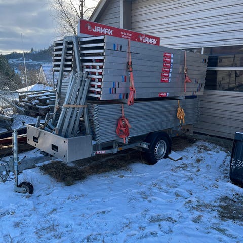 Stillas på henger selges fra konkursbo. Stillas er ikke opptalt og det er det som fremkommer på bildene som er med.