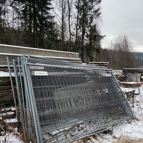 Solid parti med byggjerder. Egner seg godt til byggeplass, arrangement, sikring av område eller midlertidig inngjerding.