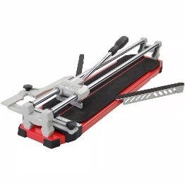 To manuelle fliskuttere, en mindre Montolit-modell (Minimontolit 43A, 45x45 cm) og en større Sigma med hjul og bærehåndtak. Begge med robust konstruksjon og spak for presis skjæring av fliser.🔹 Montolit Minimontolit 43A, kappebredde 45x45 cm