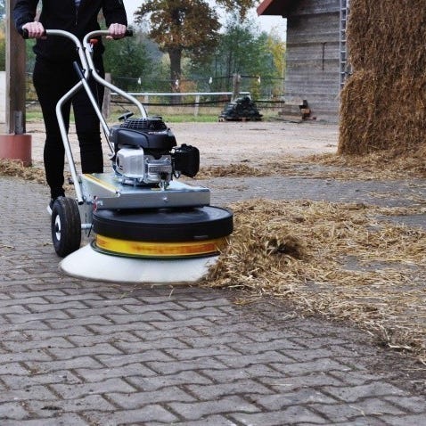 Profesjonell feiemaskin med nylonbørste som har flere bruksområder. Utrolig effektiv maskin for å feie strøsanden ut fra kanter og hjørner. "Knipser" ikke småstein. Kan derfor brukes på parkeringsplasser og i gater selv om det er biler parkert i nærheten.
