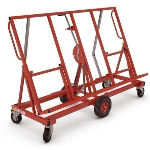 Selvfølgelig kan du bruk heisen til løft selv på lavere nivåer, så takket være den smarte konstruksjonen så er det laveste nivået samme høyde som både Gipsbukkene og Gipsvognen. Så du trenger bare å dra platene over fra vognen/gipsbukkene over på gipsheien og løfte platen til ønsket høyde.
