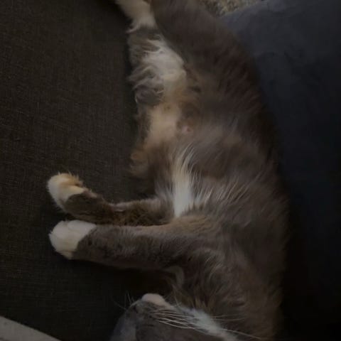 Sjenert, og litt forsiktig,men elsker ingenting mer enn ligge oppå deg eller ved siden av for å kose og sove når han først blir trygg på deg. Veldige kosete og maler mye.