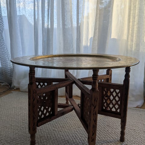 Dette bordet er av spansk opprinnelse, er lett av vekt, og mest sannsynlig fra tidlig 1900-tall. Helt vidunderlig dekorativt og meget anvendelig.