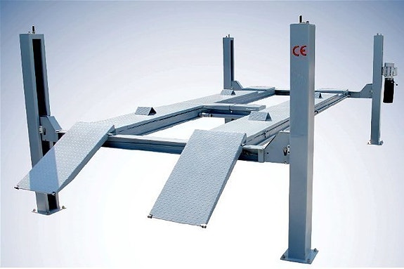 Nye 5 Tons - Elektrohydraulisk 4 søyler med svingskiver for forstillingskontroll. Justerbar bredde på kjørebaner.